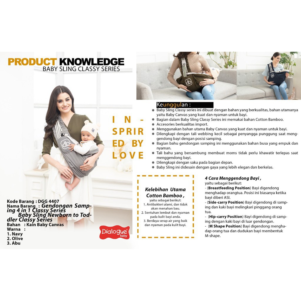 Rifan Juga punya 4 Produk lain terkait Produk DIALOGUE Baby [ DGG 4407 ] Gendongan Samping Bayi 4in1 CLASSY Series . yang perlu Anda lirik karena menarik, Produk itu adalah....
